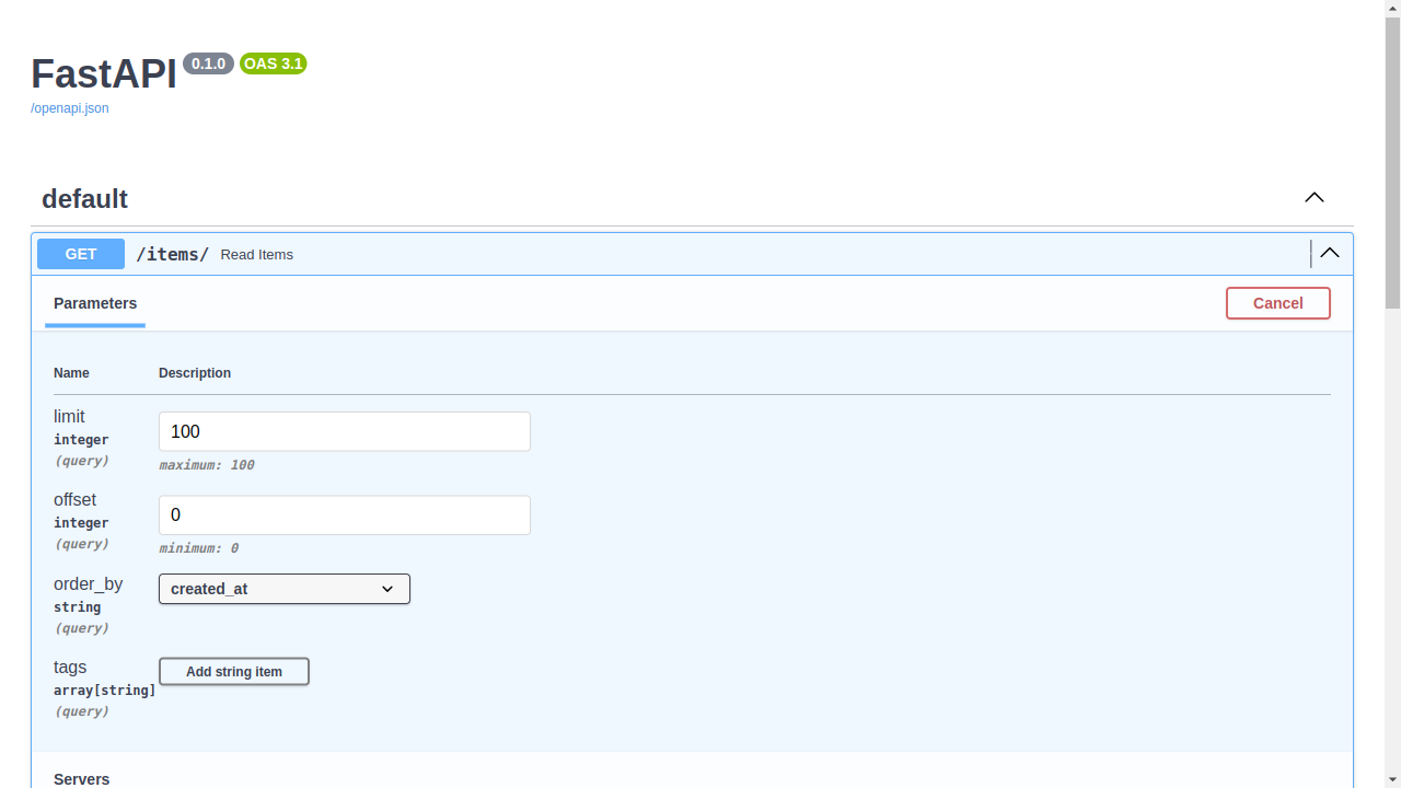 Вы можете посмотреть query-параметры в графическом интерфейсе сгенерированной документации по пути /docs: